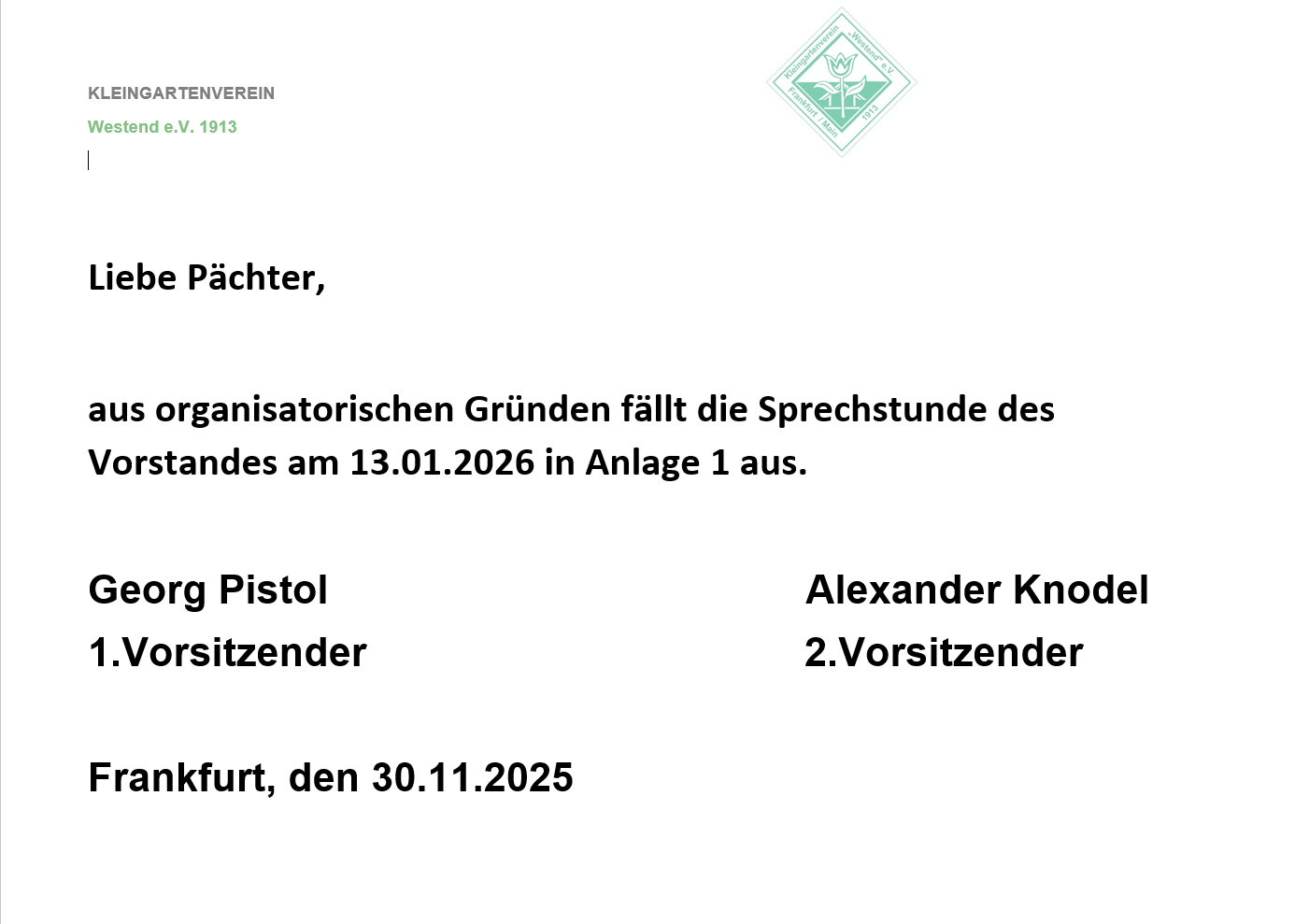 Unser Kleingartenverein mit 6 Anlagen in Frankfurt